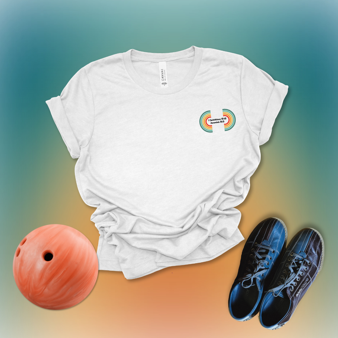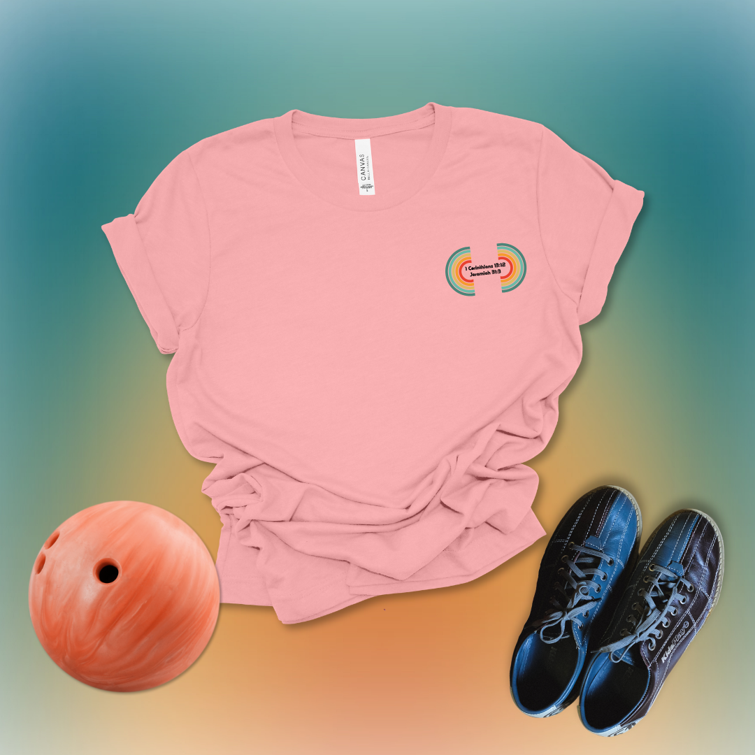 This retro-inspired T-Shirt is a vibrant reminder of God’s deep, personal love. Featuring key verses and colorful rainbow graphics, it exudes clarity, intimacy, and everlasting love.