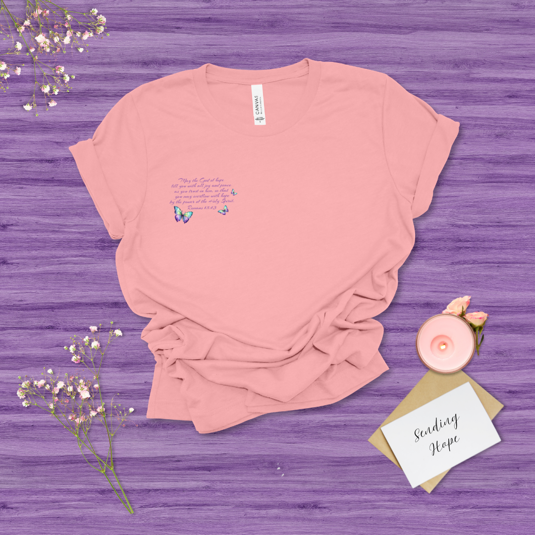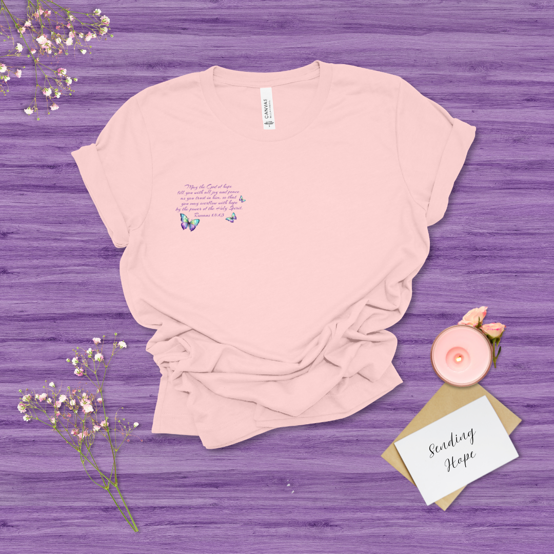 On the front, Romans 15:13 is beautifully displayed: “May the God of hope fill you with all joy and peace as you trust in Him, so that you may overflow with hope by the power of the Holy Spirit.”